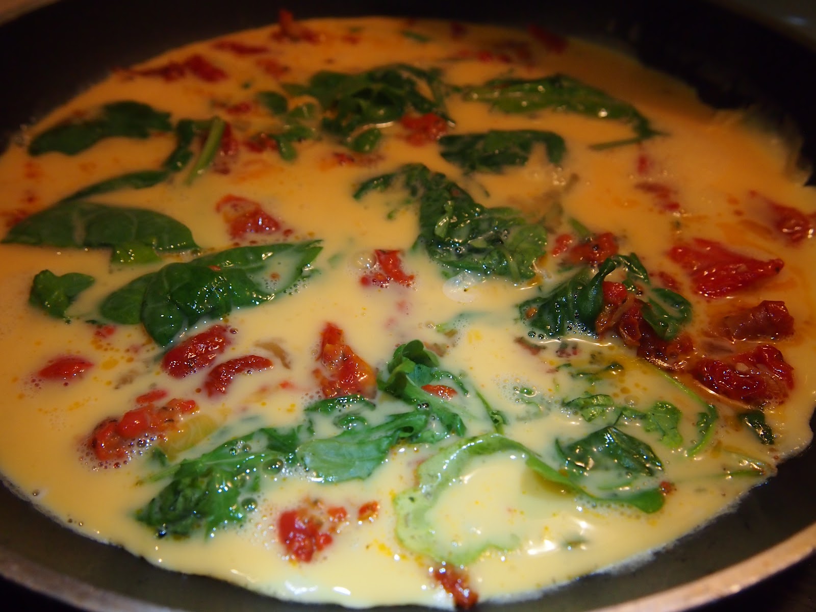 Combine eggs and milk in a pouring jug. Heat large frypan over medium-high heat, generously spray with oil. Add sundried tomatoes and capsicum to fypan and stir for 1 minute. Meanwhile, heat the oven grill to a medium heat.